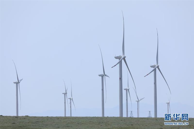 这是5月24日在哈萨克斯坦扎纳塔斯拍摄的风电场的风机。新华社发(奥斯潘诺夫摄)