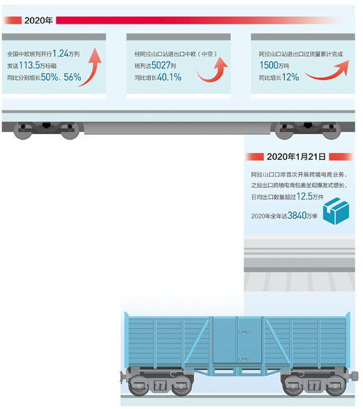 2020年,经新疆阿拉山口站进出口中欧(中亚)班列增长40.1%