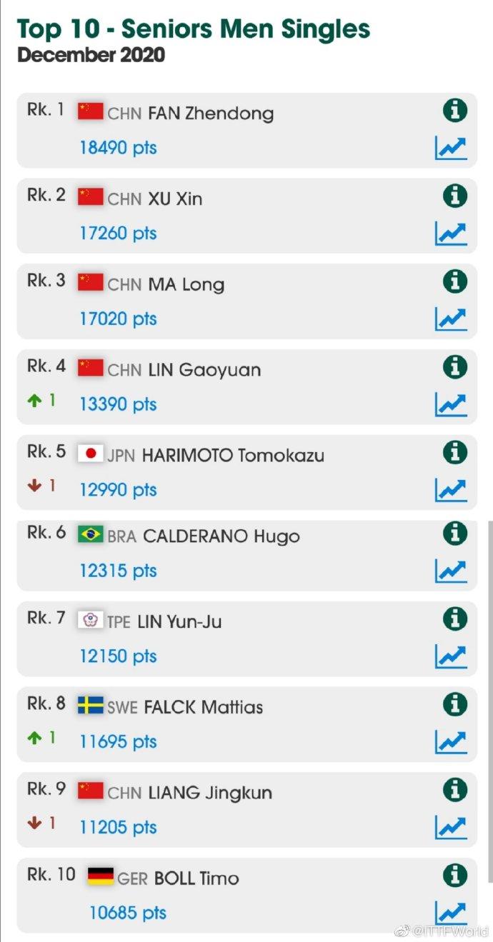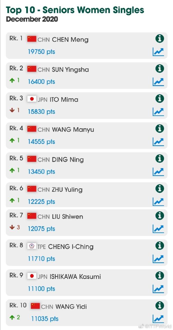 国际乒联更新世界排名 陈梦、樊振东分列榜首