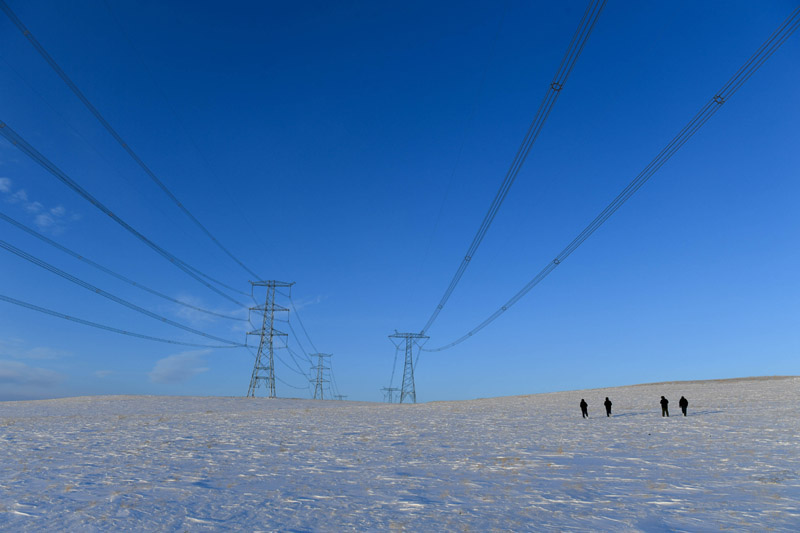 近日,内蒙古锡林郭勒盟锡林浩特市气温低于零下30摄氏度。国网蒙东检修公司锡林郭勒盟输电工区组织人员,重点对锡林郭勒盟-山东1000千伏特高压交流输变电工程等进行线路特巡,全力保障电力供应。