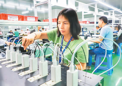 近年来,江西省赣州市全南县大力推进“放管服”改革,切实为企业纾困解难,助推企业做强做大。图为日前在江西省赣州市全南县江西络鑫科技有限公司生产车间,工人正紧张有序地赶制订单。 |