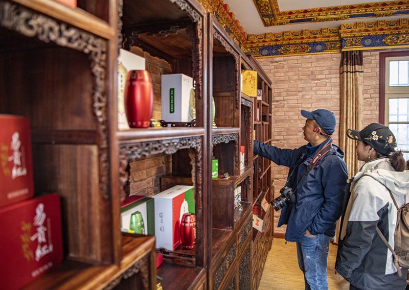 拉萨市北京路,岗坚茶叶股份有限公司门店内,一些造型独特、包装各异的茶叶产品吸引着顾客。