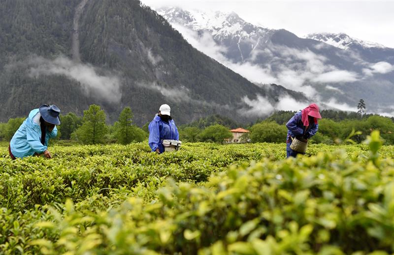 易贡茶场的工人在采摘茶叶(5月22日摄)。新华社记者 张汝锋 摄