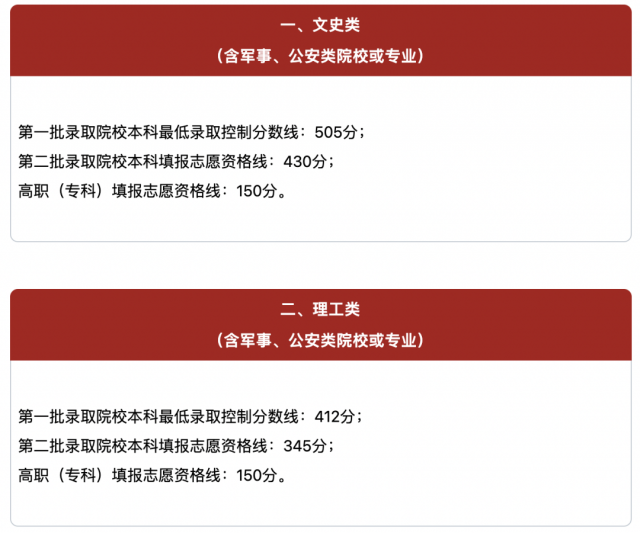 江西省2021年全国普通高校各类招生录取最低控制分数线: