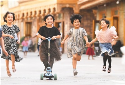 开心快乐 幸福童年 少年儿童是祖国的未来,民族的希望。我们党始终高度重视少年儿童、亲切关心少年儿童,让孩子们有一个幸福的童年和美好的未来。图为孩子们在新疆和田市团城的鸽子巷玩耍。 新华社记者 沙达提摄 |