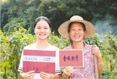 教育如灯 照亮人生 教育是民族振兴、社会进步的重要基石。当前,中国高等教育由大众化阶段向普及化阶段迈进。图为2020年9月8日,安徽安庆宿松县柳坪乡村民邓爱兰(右)和孙女吴婷华展示大学录取通知书和助学金。 陈 晨摄(人民视觉) |