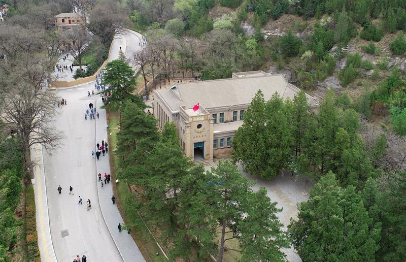 杨家岭革命旧址中央大礼堂(4月21日摄,无人机照片)。新华社记者 张博文 摄