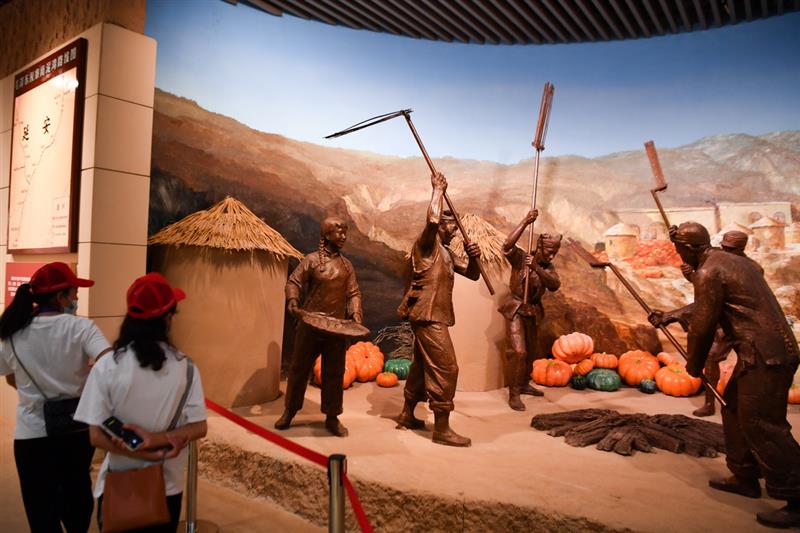 南泥湾大生产纪念馆内的雕塑作品(7月22日摄)。新华社记者 张博文 摄