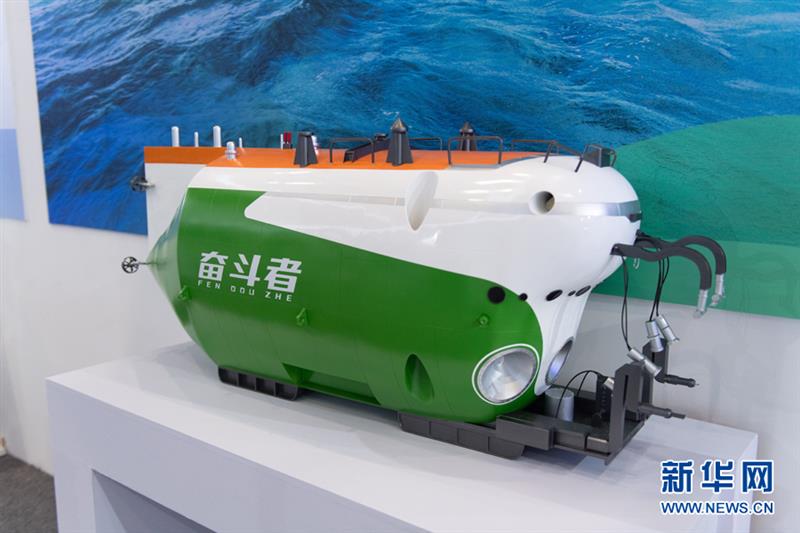 图为中国科学院金属研究所带来的“奋斗者”号载人潜水器。新华网 耿骏宇 摄