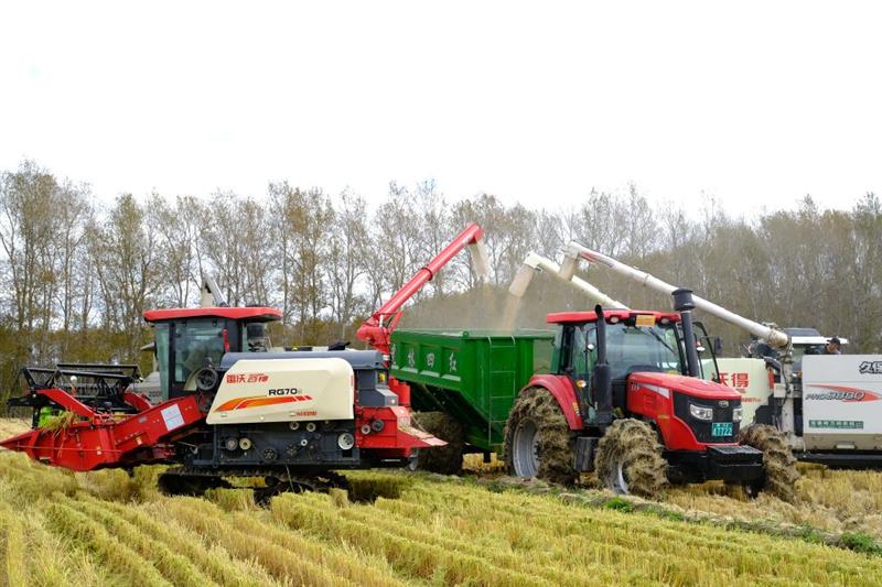 金秋九月,天高气爽,一片金黄。在位于黑龙江省的北大荒集团普阳农场有限公司,一片高产示范田正准备收割。地头上聚集了不少来观看的种植户,数辆水稻收割机“蓄势待发”,空气中弥漫着浓浓的稻香。