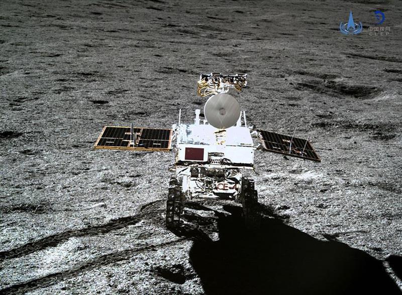 2019年1月3日,嫦娥四号着陆器与巡视器分离,“玉兔二号”顺利驶抵月背表面,在月背留下人类探测器的第一道印迹。