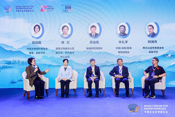 首场圆桌对话“科技创新及技术公益支撑文物事业高质量发展”由中国文物保护基金会理事、副秘书长初迎霞主持。国家文物局办公室副主任、机关服务中心主任陈红在对话中表示,国家文物局利用互联网、无人机、北斗卫星、智慧网联等,将文物保护的手段大幅提升,智慧博物馆、云展示、云平台的应用也取得很大的成果,她希望能大力加强文物科技创新的进步和指引。敦煌研究院院长苏伯民则指出互联网技术突飞猛进的发展,数字化技术在保护、研究,特别是文化弘扬、互联网文化传播方面,发挥着巨大作用,希望能有更多高水平专业人才进入到文物行业。中国(海南)南海博物馆馆长辛礼学也认为,博物馆对科技成果的应用,需要更深入的融合。腾讯公益慈善基金会副秘书长刘洲鸿则从企业的角度表示,腾讯公司的使命和愿景是科技向善,所以希望能在文物保护方面创造一些价值。