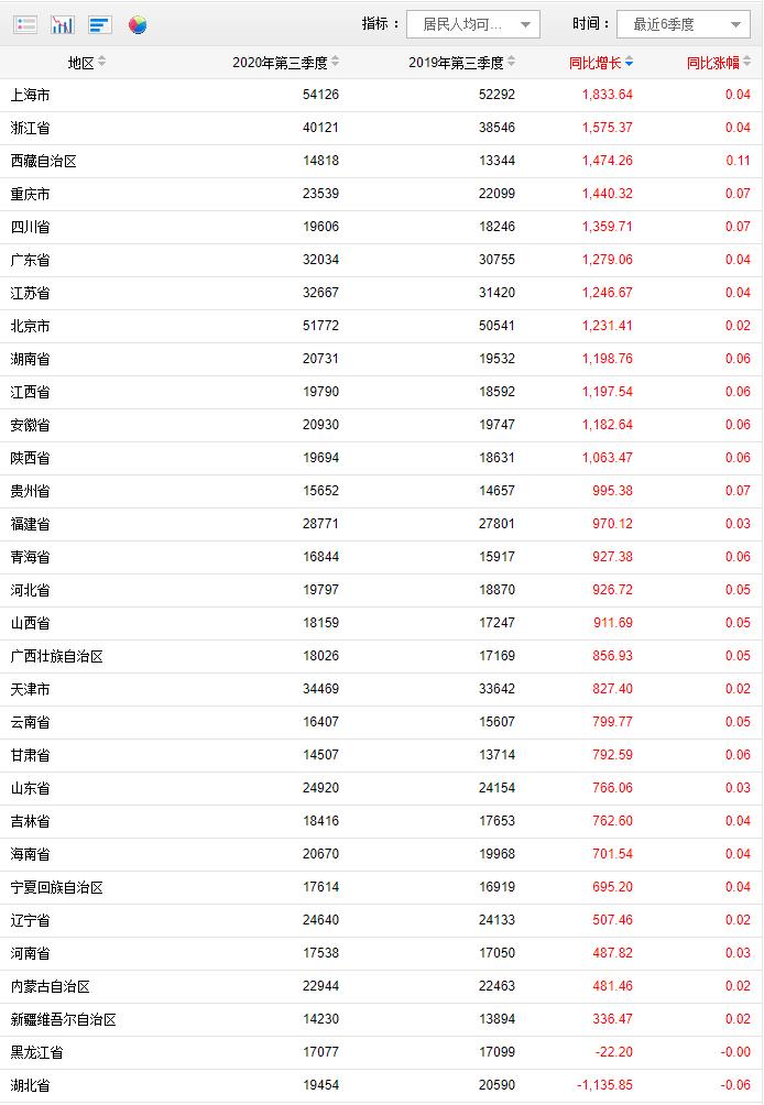 全国31省份前三季度人均可支配收入公布,看看哪里涨得更多