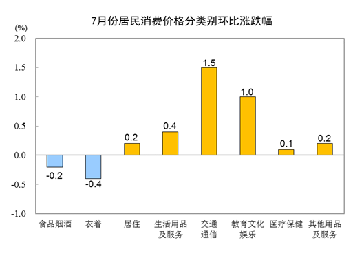 国家统计局:7月份居民消费价格同比上涨1.0%