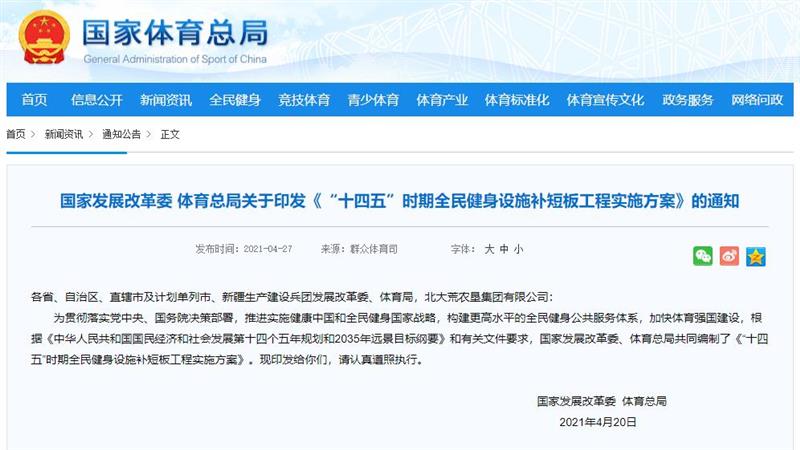 国家体育总局:2025年全国人均体育场地面积达到2.6平方米以上