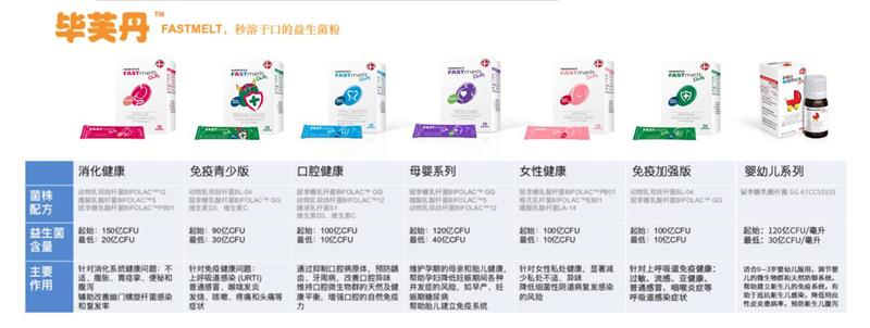 目前,已上市了两种系列共三款产品,一种肠胃消化版适用多个年龄段,另一种是适用于成人及儿童青少年的两款免疫系列益生菌,据悉,其余三款也将在今年与消费者见面!