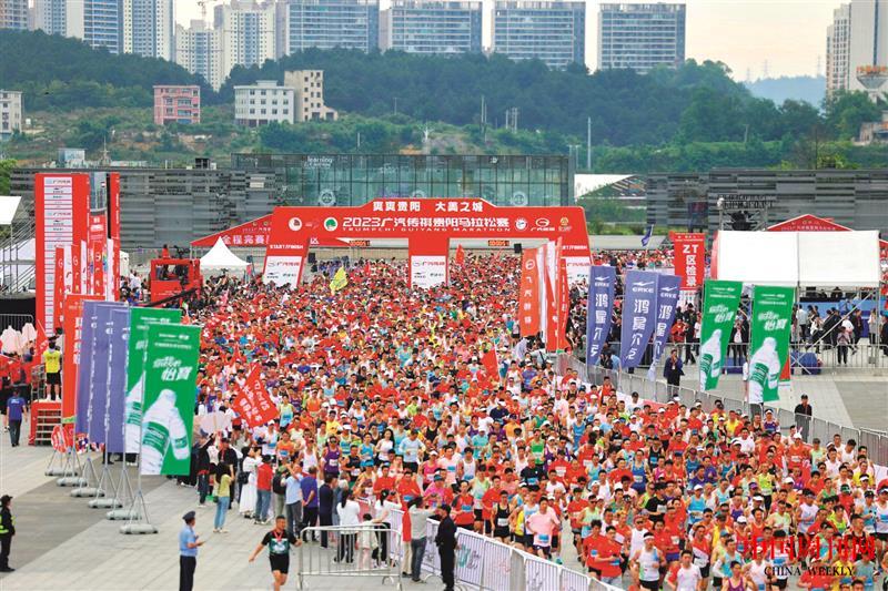 “爽爽贵阳 大美之城”2023广汽传祺贵阳马拉松赛在贵阳国际会议展览中心北广场鸣枪起跑