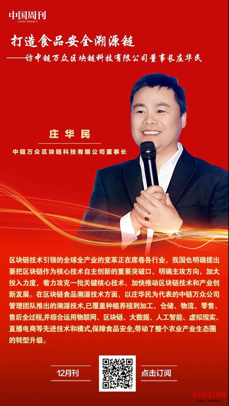 打造食品安全溯源链 ——访中链万众区块链科技有限公司董事长庄华民