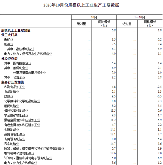 前10月全国规模以上工业企业利润50124.2亿 同比增0.7%