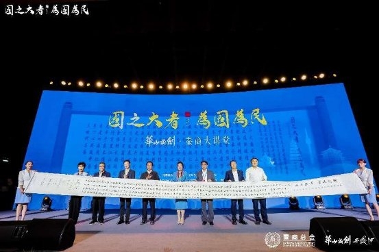 9月21日上午,举办了“国之大者 为国为民——弘扬中国精神暨华山论剑品牌文化主题大会”,陕西省总商会副会长、秦商总会副会长、华山论剑品牌管理有限公司董事长董小军发表致辞。著名文化学者、评论家、书法家、丝路文化大使肖云儒,工学博士、博士生导师郑强教授,南京师范大学教授、博士生导师郦波登台演讲。9月21日下午,举办了“国之大者 为国为民——华山论剑·秦商大讲堂”,秦商总会会长、正大制药集团总裁郑翔玲发表致辞。西安交通大学校长王树国,郑强教授,郦波教授,正威国际集团董事局主席王文银发表了精彩演讲,高潮迭起,广受好评。