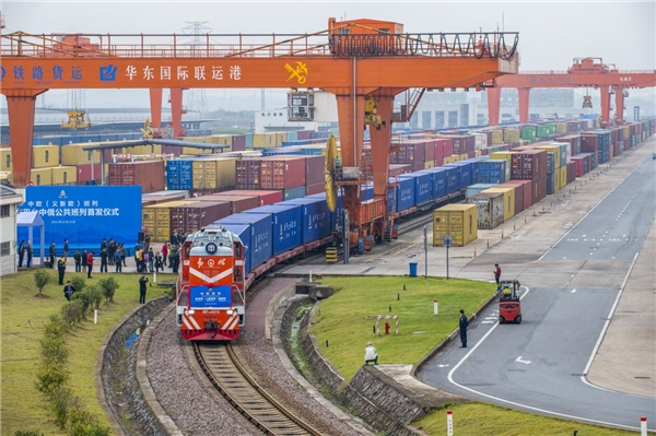 从“义甬舟”向东,金义片区依港出海。今年上半年,“义甬舟”海铁联运往返运输集装箱14.4万标箱,约占宁波舟山港海铁联运量的六分之一,成为全国最繁忙的海铁联运线路之一。金义片区上线“第六港区”数字服务平台,义乌到宁波集装箱运输时效提升50%以上,“义甬舟”东联西延辐射力日益增强。