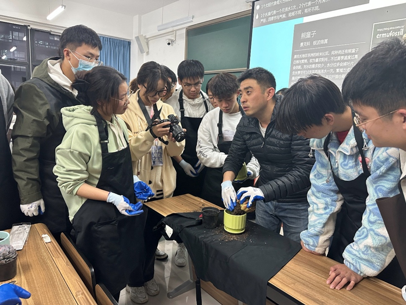 植物栽培课程上园艺老师教授同学们种植多肉植物。毛云焕摄