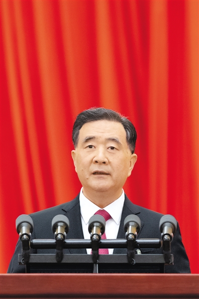 汪洋代表政协第十三届全国委员会常务委员会,向大会报告工作。