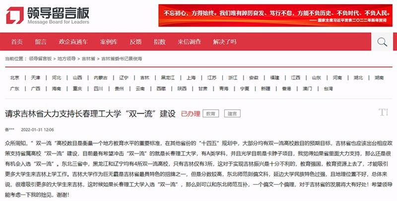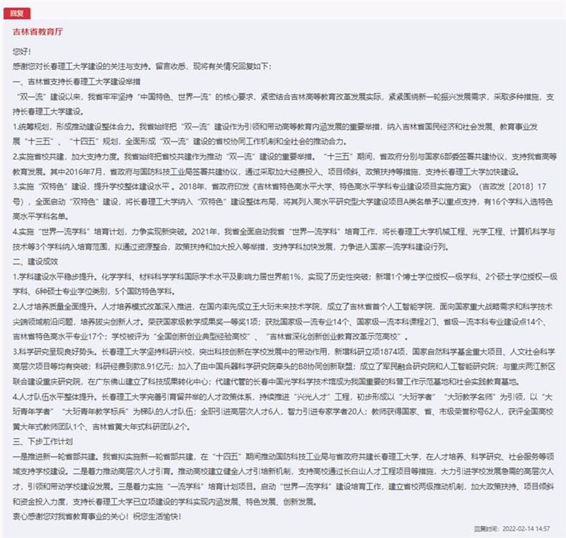 两会捎话|群众给吉林省委书记建言:大力支持省属高校“双一流”建设 吸引更多人才来吉