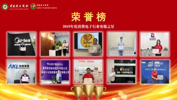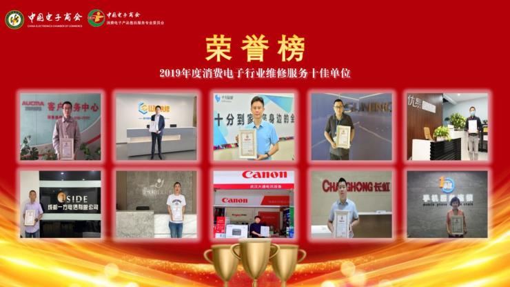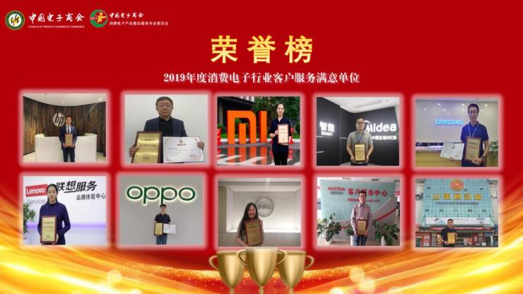 获得2019年度消费电子行业维修服务十佳单位的企业是: