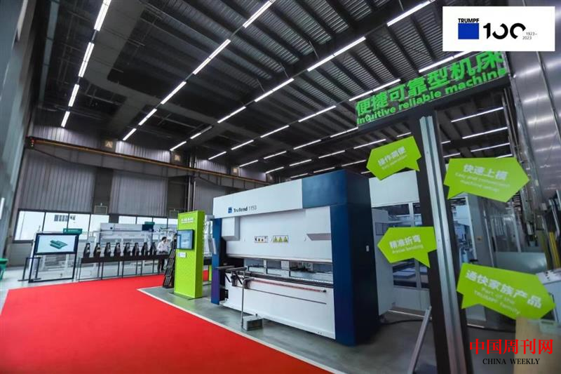 杨刚博士在通快展厅和智能工厂引导《中国周刊》调研组参观了通快24000瓦高功率激光切割机、全新TruBend 1000 Basic Edition系列、通快智能生产管理系统等全新产品和技术。他还详细介绍了通快在精密钣金加工技术领域内的各种最新技术,包括自动化、数字化方面的优势以及激光切割、焊接方面等先进的生产管理技术。中国周刊调研组对通快为新能源汽车生产制造领域带来更高效、更可靠的解决方案表示赞赏。