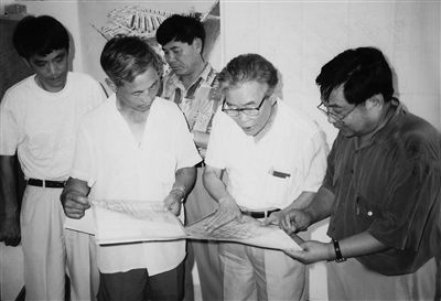 彭士禄(右二)与同事进行业务讨论。作者供图