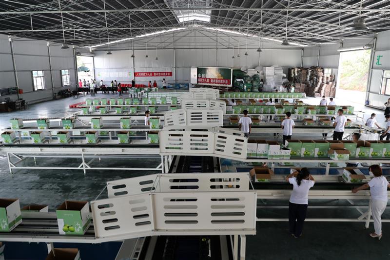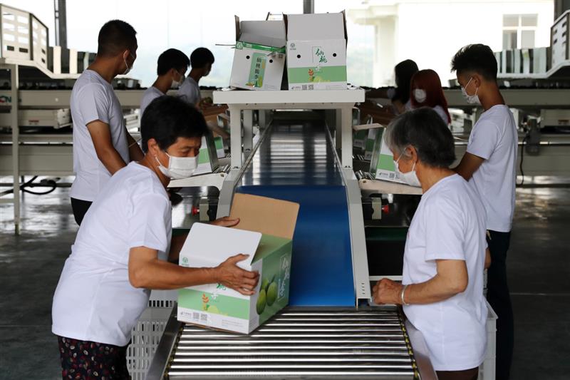 7月23日,重庆乌牛村,仙桃李通过传送带运输。(中国日报记者 王壮飞 摄)