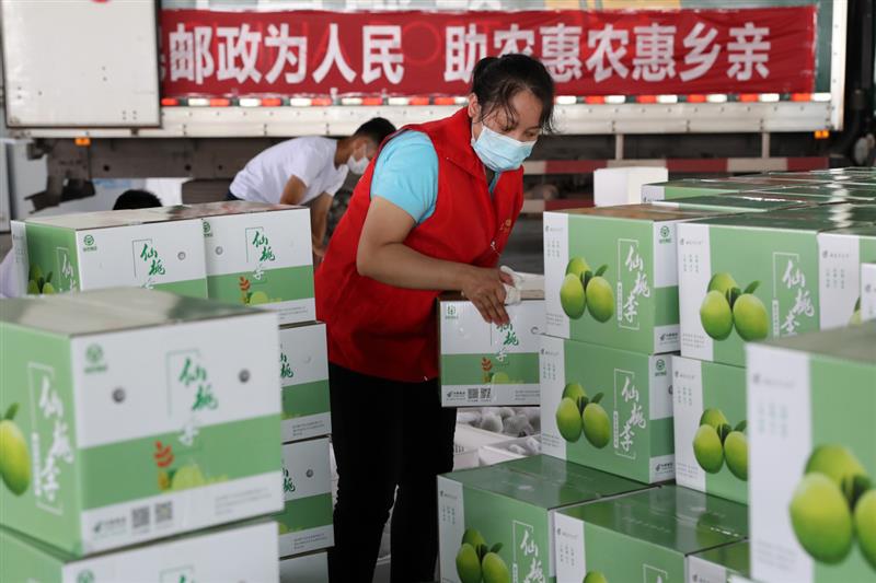 7月23日,重庆乌牛村,包装好的仙桃李将通过邮政运输到城市中。(中国日报记者 王壮飞 摄)
