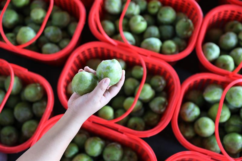 7月23日,重庆乌牛村,刚刚采摘的仙桃李。(中国日报记者 王壮飞 摄)