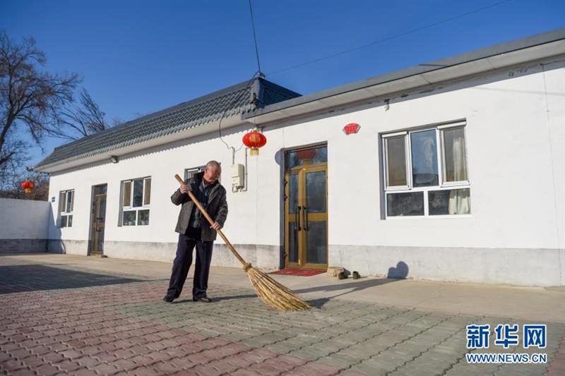 吉木萨尔县头工街东村村民杨万里在打扫房间(1月21日摄)。新华社记者 丁磊 摄