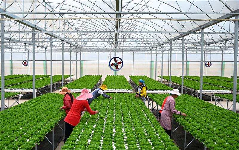 4月27日,搬迁群众在云南会泽县道成公司蔬菜大棚里劳作。新华社记者 王冠森 摄