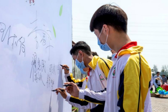 图为当地市民签名倡议保护生物多样性。孔庆乐摄