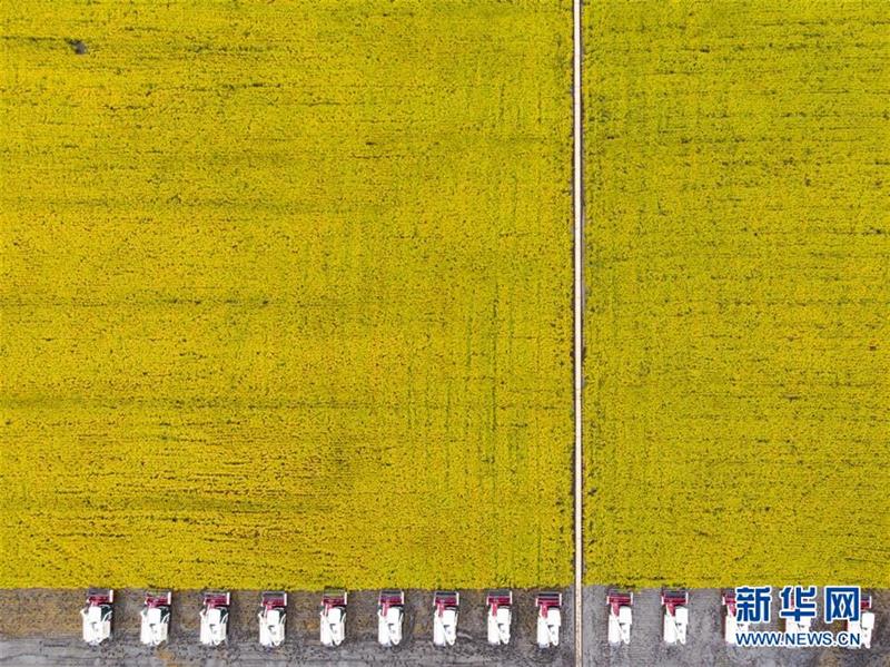 近日,在黑龙江省富锦市万亩水稻公园内,40000亩水稻迎来丰收,整个园区一片金黄色稻海,壮美如画。 新华社发(张涛 摄)