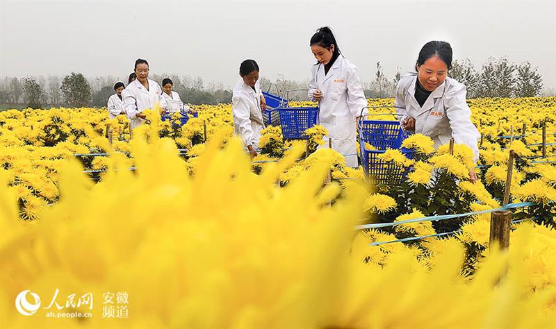 在发展旅游的同时,濠城镇还大力推进“旅游+产业+扶贫”,引进安徽虞美金菊生态农业旅游开发有限公司,围绕菊花打造产业链,帮助周边群众增收致富。