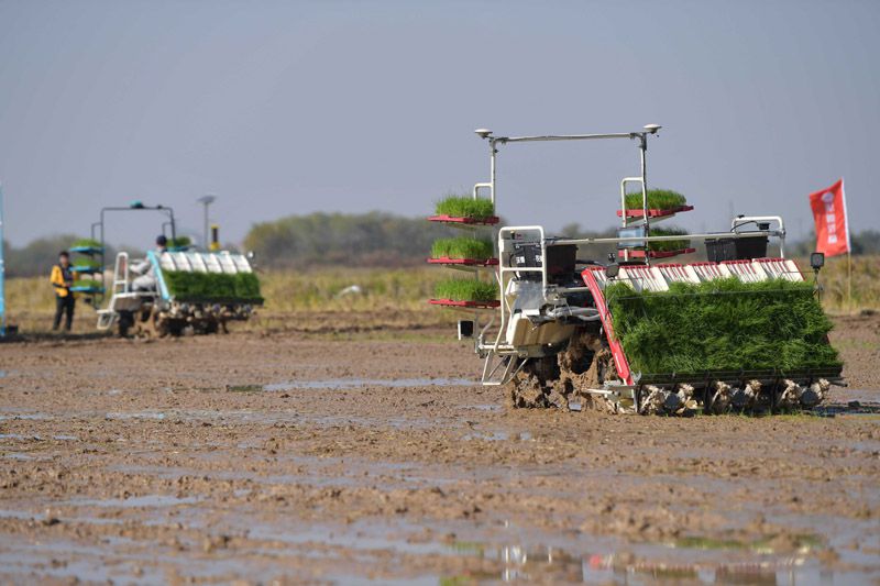 11月14日,在江西省南昌县蒋巷镇大田农社智慧农场,无人插秧作业设备在进行现场演示。
