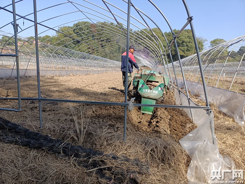 贫困户用机器耕地