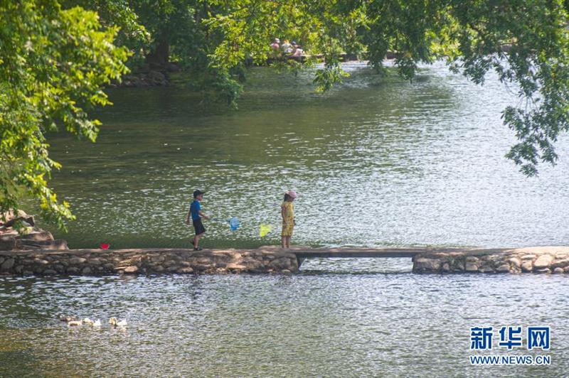 小朋友在浙江省余姚市鹿亭乡中村游玩(2020年8月26日摄)。新华社记者 江汉 摄