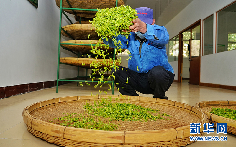 4月11日,采茶工在制作春茶。新华网发(董志刚 摄)
