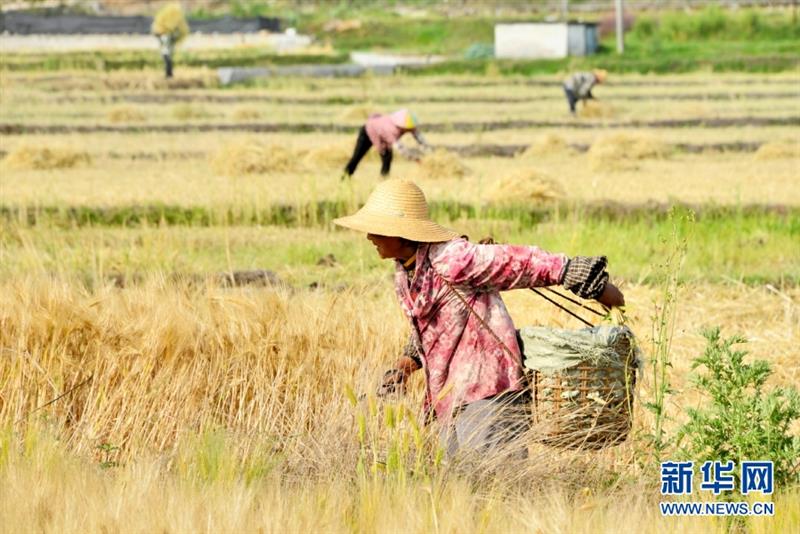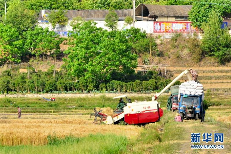 农户在收麦子(5月3日摄)。新华网发(吴再忠 摄)