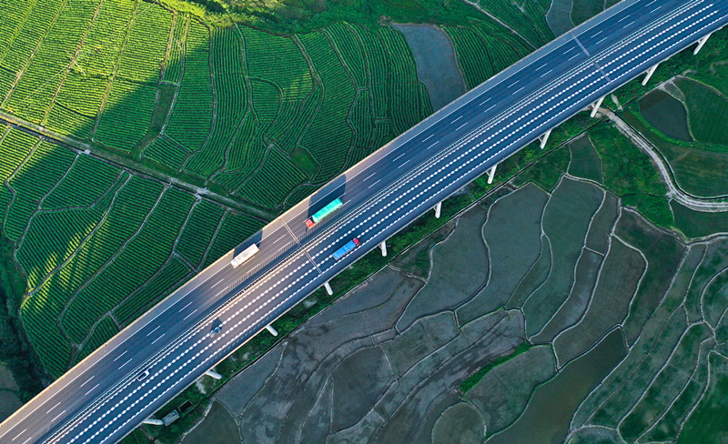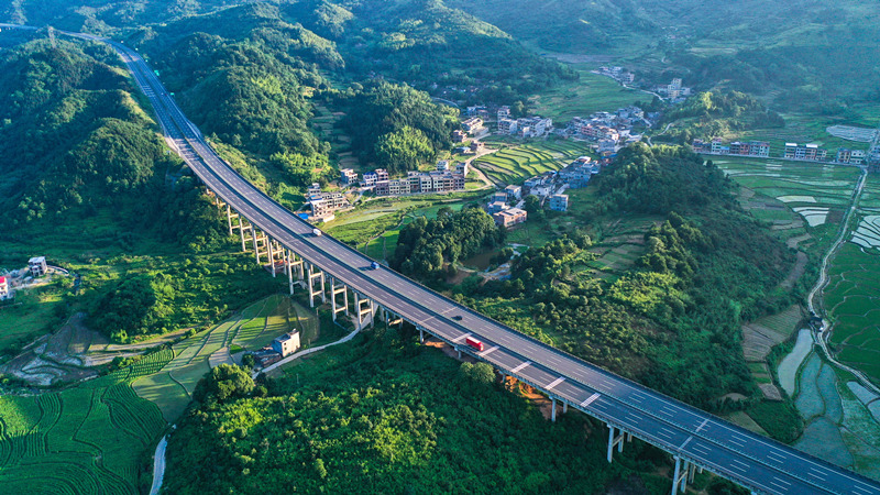 穿境而过的许广高速与农房民居、绿色田园交相辉映。周秀鱼春摄