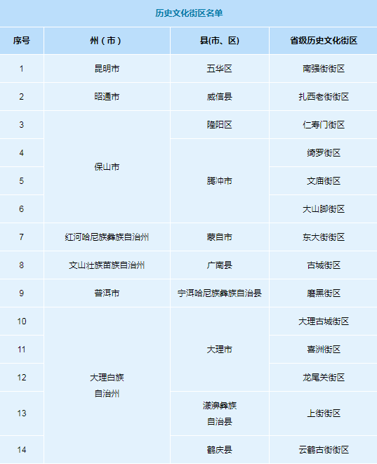 中国网7月15日讯 7月12日,云南省住房和城乡建设厅、云南省文物局发布公示,按照相关文件要求,云南省1个省级历史文化名村和14片历史文化街区已完成相关申报程序,并通过省级专家审查会审查,达到批准公布要求,现将拟报请公布名录予以公示,以接受群众监督。