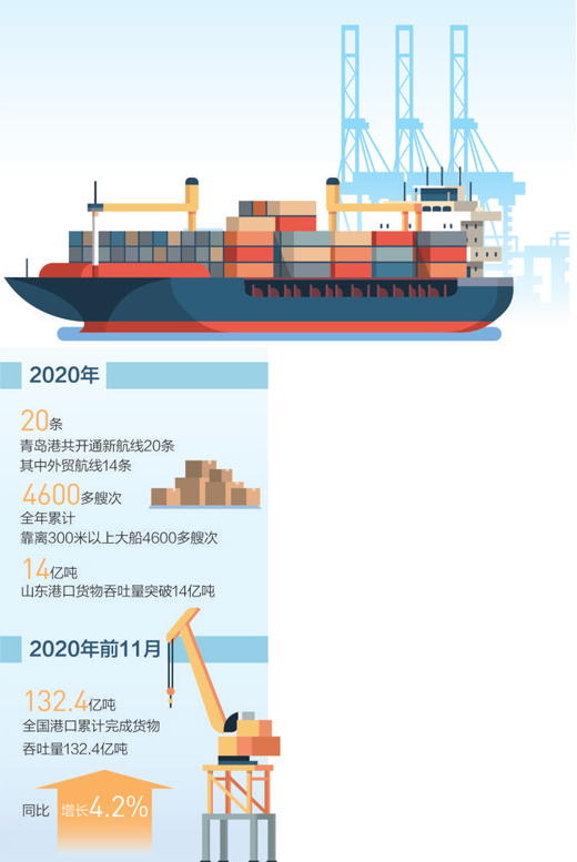 2020年,青岛港新增外贸航线14条 港口忙 贸易旺