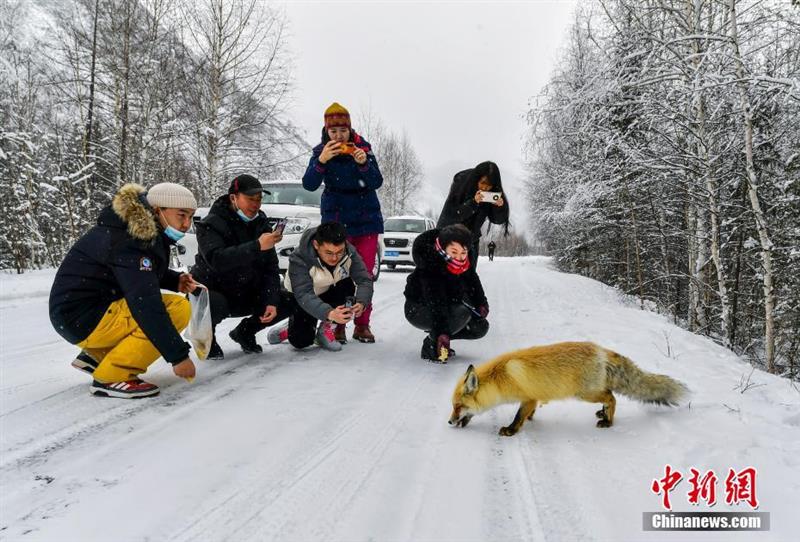 新疆喀纳斯:爱心游客投喂野外觅食的狐狸