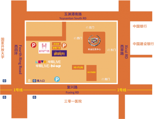 调调街交通便利,华熙LIVE·五棵松商业区地面层东北角、凯迪拉克中心西侧。地铁1号线五棵松站下车,B口出站,穿过地铁连廊进入商业街区,从东北侧坡道上到地面层即到。