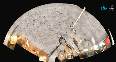 12月4日,国家航天局公布了探月工程嫦娥五号探测器在月球表面国旗展示的照片。 |